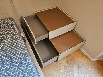 CAMERETTA SEMI-NUOVA, USATA SOLO 5 MESI, valore iniziale dimostrabile con fattura, composta da libreria con vano scrivania 243L x 211H x 33P (marca Sangiacomo), 2 cassetti collezione "filo" 53x89+53x59 (marca Sangiacomo), letto "Good" compatto con contenitore frontale (marca Samoa) rete 120x200 ingombro 144x214, materasso 120x200 (Chiardiluna modello XM - 1000 molle insacchettate e Memory Ultra-traspirante, dispositivo medico Classe I). Vendo solo in blocco. VERO AFFARE!