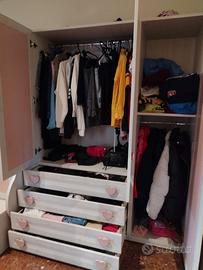 Armadio composto da tre ante e quattro cassetti.