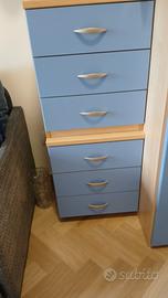 causa trasloco, vendo mobili per cameretta quasi nuovi di colore azzurro/legno di nota casa costruttrice come sotto:
