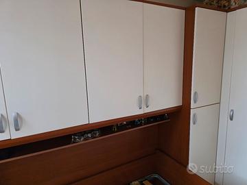 Cameretta angolare in legno a ponte con lettino singolo e rete in doghe