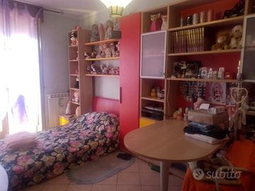 Vendo Questa bellissima cameretta Moretti compact in ciliegio con tantissimo spazio e una grande cabina armadio ad angolo e una scrivania di mezzo.
