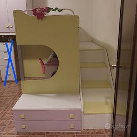 vendo per cambio arredo cameretta a ponte in buono stato con scale contenitore, pedana portaoggetti due cassettiere da 4 e 3 cassetti.