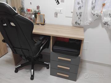 - scrivania L120xP57xH76,5 con 3 cassetti laterali