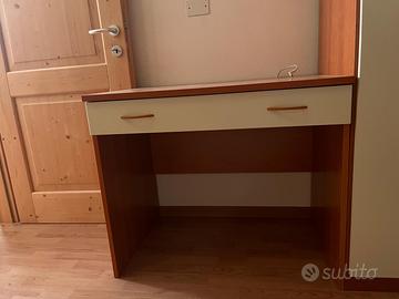 vendo cameretta singola con letto e cassettone per possibilità secondo letto salvaspazio, comodino, armadio e piccola scrivania.