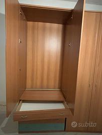 Vendesi cameretta in buono stato. Armadio con 4 cassetti. Comodino 2 cassetti Ringhiera letto Rete letto singolo Scrivania con libreria