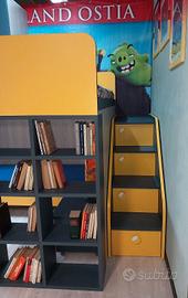 Armadio ponte soppalco angolare mod. Golf con scala laterale con contenitori, eslusi rete e materassi, in offerta per esposizione presso Mobili Carpenti via Cassia km 35,600 loc. Settevene - Nepi (VT) tel. 0761527086