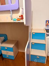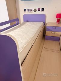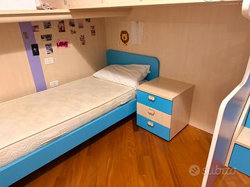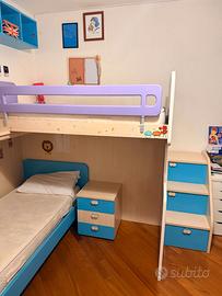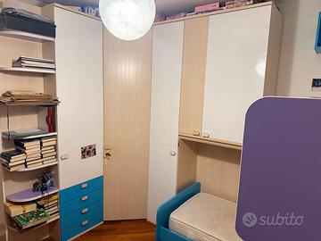 Camera che ha 9 anni di età, tenuta benissimo, con un armadio ricco di sportelli e spazi, 2 "botole" da poter riempire e tanti cassetti e cassettoni. Include due reti e due materassi.