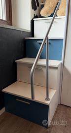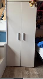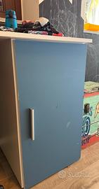VENDESI: Cameretta 254x120cm 1 letto soppalco bianco lucido Simone Gihome®. Usata ma tenuta benissimo. La Cameretta e' Bianca lucida e include: -letto -materasso -armadio -scala con vani per raggiungere il letto -scrivania. E' stata personalizzata con inserti adesivi blu come visibile in foto, ma facilmente rimovibili. per info scrivetemi pure via Messenger. !!!RITIRO A CARICO DELL'ACQUIRENTE!!! (eventualmente posso far trovare smontata)
