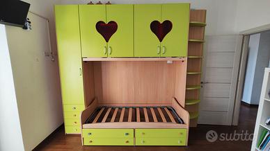 Cameretta da ragazza in ottime condizioni costituita da armadio ponte a 4 ante più due ante laterali ed una colonna con mensole. Marca Spar