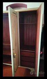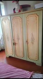 vendesi cameretta già smontata in stile veneziano. presenta segni di usura. completa di armadio, comodino, letto e una sedia non presente nelle foto. ritiro a carico dell' acquirente. No perditempo per informazioni o altre foto non esitate a contattarmi.