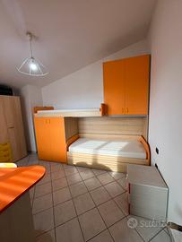 Vendesi cameretta completa di letto a castello (tre posti letto) armadio un comodino e scrivania.