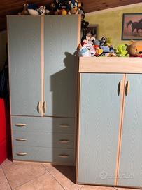Vendo cameretta bambini con letto a castello, armadi, scrivania e comodino. Usata ma in buone condizioni. Smontaggio e ritiro a carico dell'acquirente. Prezzo leggermente trattabile.