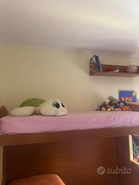 Cameretta com letto a castello completa di due letti rete e un materasso come nuovo scrivania completa di ripiani