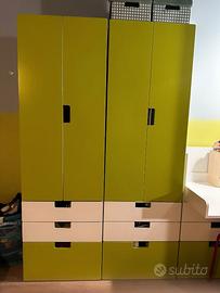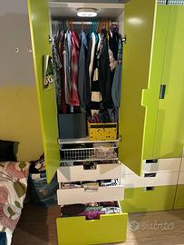 2 armadi guardaroba capienti, ciascuno con 3 cassetti integrati
