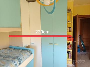vendesi cameretta moderna con ponte ,ad angolo e due letti . Possibilità di togliere l'angolo e comporre in maniera diversa . La cameretta comprende anche una scrivania con una mensola . Spese di eventuale trasporto a vostro carico