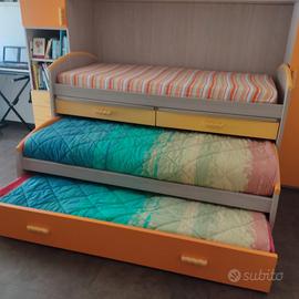 Cameretta acquistata presso Nuovo Arredo nel 2020 lunghezza totale m 3,30. Blocco letto indipendente. Due scrivanie estraibili più due cassetti. Ottime condizioni.