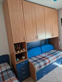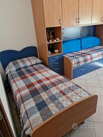 Cameretta con tre letti.uno estraibile sotto al ponte con possibilità di opzione singola o anche matrimoniale.Completi di reti a doghe ,scrittoio con sedia e mensola!