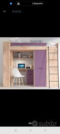 ne vendo due sia insieme che singolarmente, una lato destro è una lato sinistro. la struttura è composta da letto, cabina armadio, scrivania, e ulteriore armadio. molto spazioso, ci stanno moltissimi vestiti e giochi, la scrivania ha anche un armadietto profondo un cassettino e due mensole grandi, molto spazio per libri o altro. cabina armadio con specchio interno, mensole 5 in aggiunta all'armadio esterne, più altre mensole nella cabina armadio. comprate nuove a 1700€ praticamente mai usate perché abbiamo cambiato la stanza con l'arrivo del terzo figlio e preso una struttura da 3 letti. vendo una struttura a 500€ trattabili, con eventuali sconti se prese entrambe. vendo a Trieste a chi le viene a prendere.