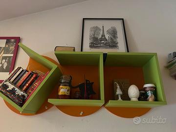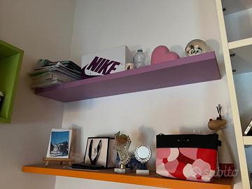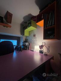 vendo letto contenitore verde e viola, armadio libreria, scrivania e mensole colorate