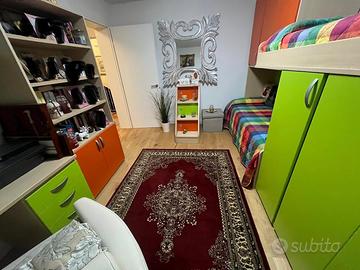 Vendo cameretta come da foto comprensiva di materassi. Due letti con armadi e scalini per accesso al letto superiore , scrivania e libreria.