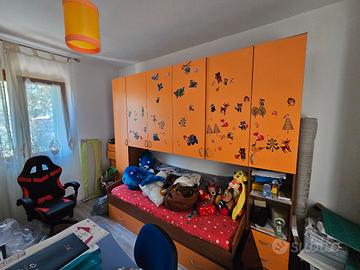 Vendo cameretta arancione usata pochissimo perché nella camera degli ospiti. Gli stikers sono di facile rimozione ( attacca e stacca). Contiene 1 letto con rete e materasso. Essendo quasi nuova prezzo poco trattabile. No spedizioni e proposte assurde. Misure letto 200x95 armadio altezza 228, profondità 52, lunghezza 280 cassettiera 110x40x40