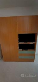 VENDO CAMERETTA UNISEX COMPOSTA DI DOPPIA SCRIVANIA (150Lx70P la fissa, 140Lx70P la mobile), LIBRERIA (colonne 47Lx35P + libreria 237L x 227H), LETTO, DUE MENSOLE (80Lx26P), DUE ARMADI (60Px90Lx227H) UNO DEI QUALI CON RIPIANI A GIORNO, NOCE E VERDE, COME NUOVA!