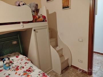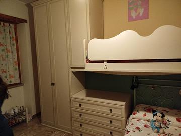 Vendo per cambio arredamento cameretta con letto singolo e letto a castello colore beige con rifiniture verde acqua adatta sia per bimbo che per bimba, misure in foto ,ritiro a carico dell' acquirente prezzo 399