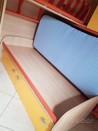 Vendo cameretta Moretti compact come da foto. Letto singolo con cassettoni più letto soppalco con scala a contenitore.