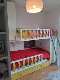 Vendo bellissima cameretta con due posti letto e cabina armadio molto ampia e comoda causa trasloco. Le misure sono in figura.
