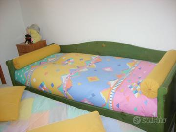 Vendo struttura doppio letto singolo con doghe senza materassi; il secondo letto è estraibile dal cassettone inferiore.