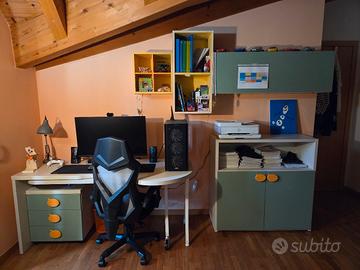 Vendo cameretta completa in ottime condizioni, moderna e funzionale, colore verde salvia con dettagli arancio, ideale per bambino/ragazzo.
