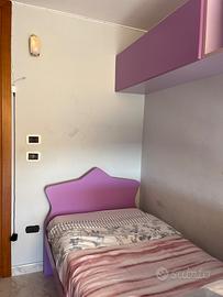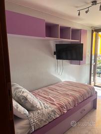 Cameretta composta da scrivania con sedia e cassettiera, libreria con 5 ripiani, mensole sopra il letto, un letto apribile composto da due materassi singoli, un materasso dorelan nuvola. Ottime condizioni.