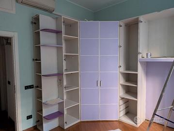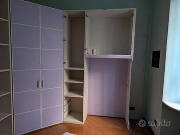 Camera con cabina armadio bicolore Lilla e Viola SENZA LETTO (GIESSEGI Industria mobili) € 1.200 #TRATTABILI# Misure: Altezza cm 255 Lato lungo cm 255 (ponte) Lato corto cm 210 Si possono fornire anche disegni tecnici risalenti al giorno della della progettazione.