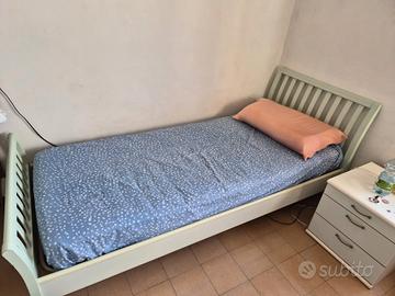 vendo 2 camerette con letti singoli (con o senza materassi ottimi permaflex), con una cassettiera,2 comodini e scrivanie (possibilità di averne 5) altrimenti 1 per letto. colore verde menta. il prezzo si riferisce a singola stanza. prezzo trattabile.