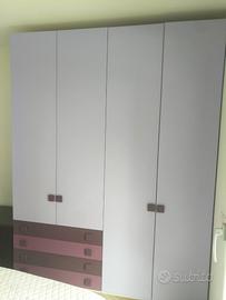 Vendesi cameretta Giessegi laccata opaca acquistata recentemente, in perfette condizioni. La cameretta è costituita da letto alla francese, incluso materasso ortopedico, scrivania con cassettiera, armadio a due ante con cassettiera. comodino, mensola. Disponibile anche in colorazione blu da bambino. Attualmente montata. Da smontare e ritirare in loco.