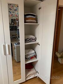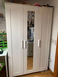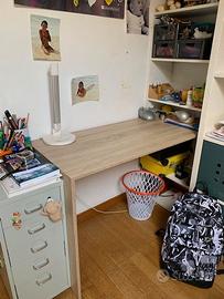 Camerina con mobili Ikea. Letto, con 2 cassetti contenitori 207x89, (compreso di materasso, piumone e lenzuola. Armadio piccolo tre ante 117x50h190, con specchio. Scrivania con piccola libreria incorporata tavolo 119 x50xh73 e parte con libreria h 143. Cassettiera metallo grigio con ruote 5 cassetti 36x70. Camerina usata, si trova a Pieve a Nievole.