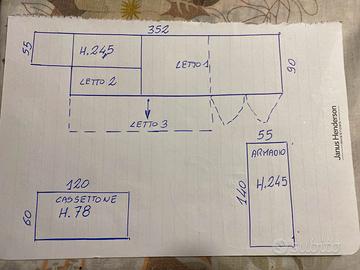 Vendesi intera camerina 3 posti letto buone condizioni. L’ho trovata con l’acquisto nel 2025 della casa, devo ristrutturare quindi vendo. I materassi sono esclusi. Possibilità di vederla a Cinquale Montignoso nei we fissando anticipatamente in quanto non ci vado sempre. Smontaggio e trasporto a carico acquirente.
