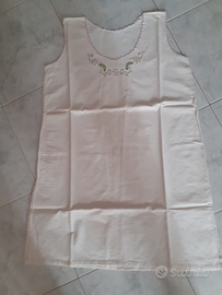 Camicia da notte smanicata in canapa ricamata