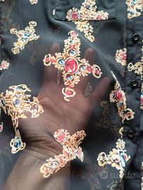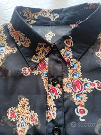 Camicia donna manica lunga, taglia S/M, colore nero trasparente con fantasia croci, sul davanti presenta due taschini altezza seno. Misure: spalle 37cm, seno 51cm, lunghezza 67cm, lunghezza manica 64cm. Nuova senza cartellino. Prezzo €15. Contattare tramite subito o via sms/whatsapp il 3248986120.