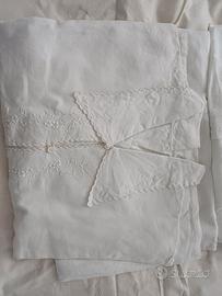 3 Camicie da notte in lino finamente ricamate con manica lunga.