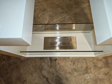 Causa inutilizzo vendo caminetto a bioetanolo 78x25x58h cm senza canna fumaria L'elemento di maggior spicco di questo biocamino da pavimento è certamente il design: la forma esclusiva a staffa stilizzata, colpisce l'osservatore e fa intuire l'eccezionale attenzione riservata alla sua costruzione. In particolare, la struttura in metallo con vetro temperato è progettata per valorizzare salotti, giardini e uffici, trasmettendo una nota inconfondibile di modernità e raffinatezza. Attraverso i due inserti paralleli in vetro trasparente, sarà possibile proteggere la fiamma da eventuali colpi di vento e apprezzarne la vivacità senza ostacoli visivi. Il bruciatore del biocamino è realizzato in acciaio inox con una capacità di 1,5 lt e al suo interno contiene una specifica fibra di vetro che consente alla fiamma di durare fino a 5,5 ore. Il combustibile da utilizzare è il bioetanolo, un prodotto del tutto ecologico e sicuro che offre ottime prestazioni in termini di calore, senza lasciare residui di ceneri e fumi. Apprezzabile anche da spento e si abbina perfettamente ad ambienti caratterizzati da arredi minimal e contemporanei. Disponibile anche nella variante di colore nera. Caratteristiche Autonomia: fino a 5,5 ore Dimensione caminetto: 78x25x58h cm Dimensione vetro: 56x0,5x22h cm Dimensione bruciatore: 35x18,5x8,1 cm Colore: Bianco Consegna a mano a Roma, zona Portonaccio Casalbertone