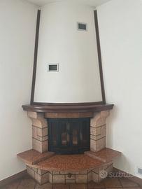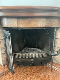 Caminetto a legna con focolare in ghisa e porta per riscaldamento ad aria e irraggiamento.