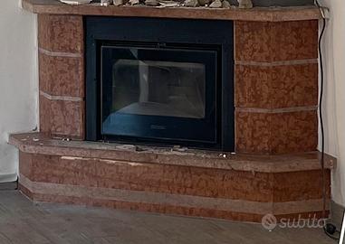 Caminetto a legna Piazzetti da i terno con ventilazione, già smontato, con struttura esterna in marmo. Ha il vetro rotto