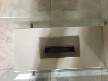 Materiale struttura: Metallo Vetro: Vetro temperato Bruciatore: Acciaio inox Colore struttura: bianco Vetro: trasparente Bruciatore: grigio cromo misure 80 c/m lunghezza ,60 c/m H, 31 c/m larghezza, 1,5 L