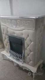 Caminetto elettrico stile versace completamente funzionante di colote beige e argento ..molto bello .