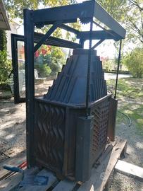 Caldaia caminetto 300 kg con porta vetro a scomparsa con doppia apertura marca Felipe francese con raffreddamento x I radiazione nelle 12 ore successive riscalda 100 metri quadri in un ora consumi giornalieri 15.. 20 kg al gg