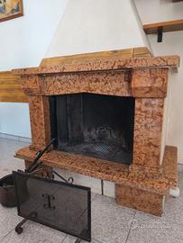 Caminetto prefabbricato in ghisa e granito Rosso di Verona