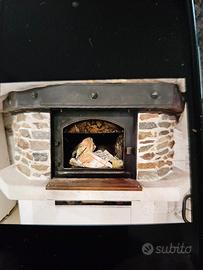 Vendo caminetto per riscaldare con fuoco a vista e piccolo forno, con motorino per aria calda, riscalda appartamento da 80/90 metri quadrati, ideale per taverna o studenti.