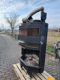Caminetto monoblocco marca "Edilmark" con ventilazione tutto funzionante. Camera di combustione in ghisa con chiusura in vetro con meccanismo sali/scendi, Dimensioni camera di combustione in ghisa larga cm 80, altezza 50 cm e profondità cm 50
