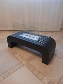 Camino a bioetanolo da tavolo o da pavimento, con 2 vetri temperati di protezione e struttura in acciaio verniciato. Dotato di bruciatore removibile con fibra, coperchio di chiusura fiamma e braccetto controllo coperchio. Non richiede né canna fumaria né allacciamento elettrico.